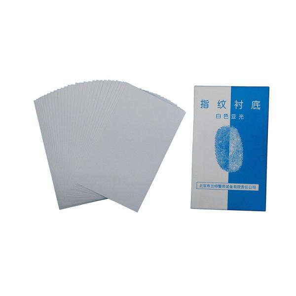 0.35mm thick hardpaper, white on both sides, one sided is composite matt plastic film. The coated surface is used for fingerprint substrate, and the uncoated surface is used for writing material evidence information